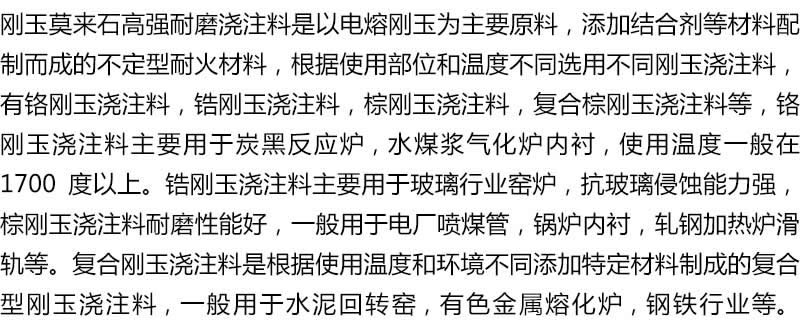 | 可根據(jù)需求定制不同指標(biāo)的澆注料,詳情請電話咨詢15838215788 | ||